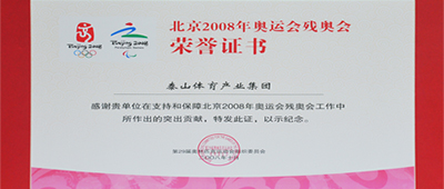 第二十九届奥林匹克运动会组织委员会为milan集团颁发北京2008年奥运会残奥会荣誉证书